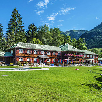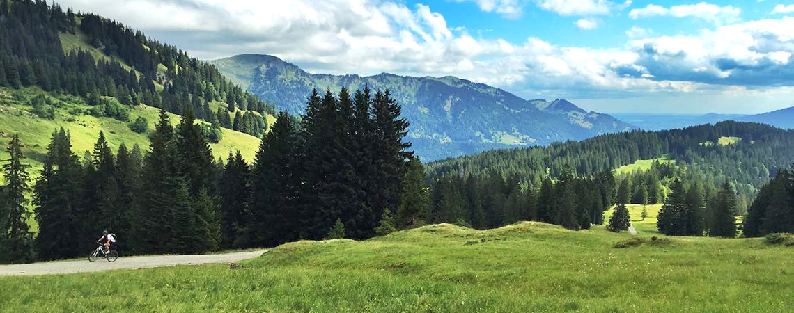 Wir möchten Ihnen eine Tourenvariante vorstellen, die nur wenig ansteigt und auch mit einem normalen Rad oder mit Kindern gut zu schaffen ist. Ihr Weg führt quer über blühende Wiesen, auf kleinen bewachsenen Waldwegen am Ufer der Stillach entlang und vorbei an Ziegen und Kühen mitten durch die Natur.