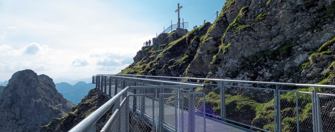 Das Nebelhorn ist der "Hausberg" von Oberstdorf - und auch vom ALPENLAND bietet sich Ihnen ein fantastischer Blick auf diesen Berg. Es gehört zur Daumengruppe und ist mit seinen 2224 Höhenmetern einer der bekanntesten Gipfel in den Allgäuer Alpen. Der Berg bildet die höchste Erhebung eines lang gezogenen Bergkammes, auf dessen Grat sich der Hindelanger Klettersteig erstreckt. Bekannt ist das Nebelhorn für den spektakulären 400-Gipfel-Blick, der manchmal sogar bis zum Bodensee reicht.