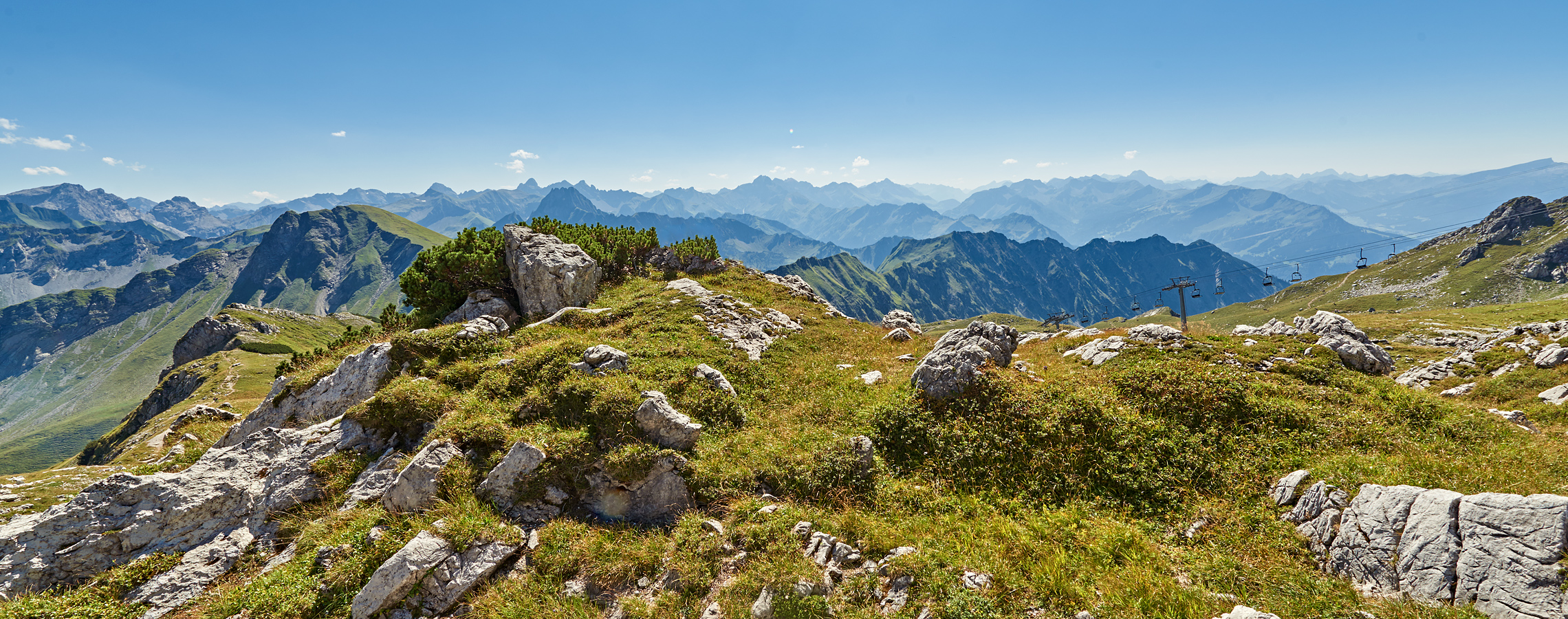 Der Aufstieg in die hochalpinen Gipfellagen erfolgt bequem mit der Nebelhornbahn. Die bis zum Gipfel rund 1.400 Höhenmeter überwindet. Ambitionierte Biker können über eine steile Teerstraße bis hoch zur Bergstation gelangen. Für Wanderer führt ein wunderschöner Naturpfad durch das Faltenbachtobel bis hinauf zur ersten Sektion - der Seealpe.