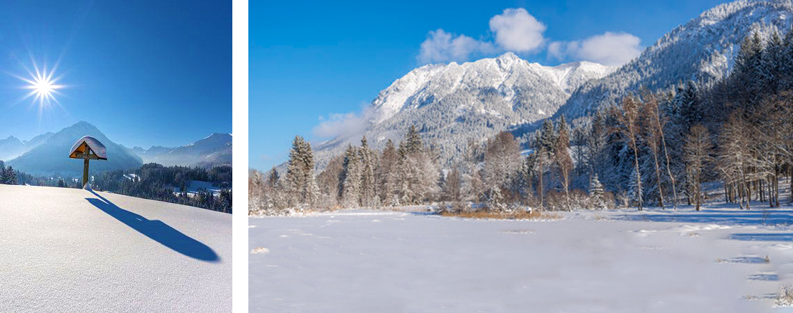 Auf leisen Sohlen - querfeldein - durch eine frisch verschneite Wiese stapfen - das gehört zu einem Winter-Märchen-Urlaub.